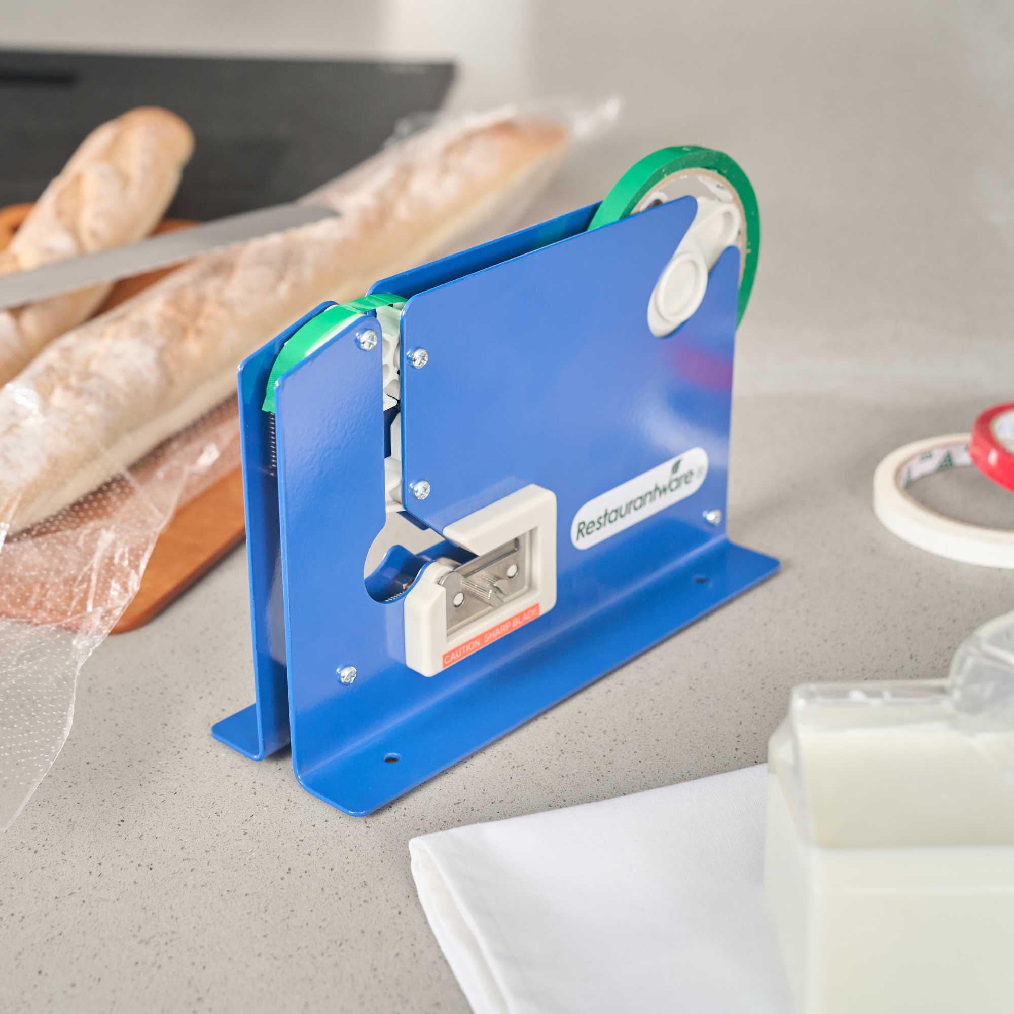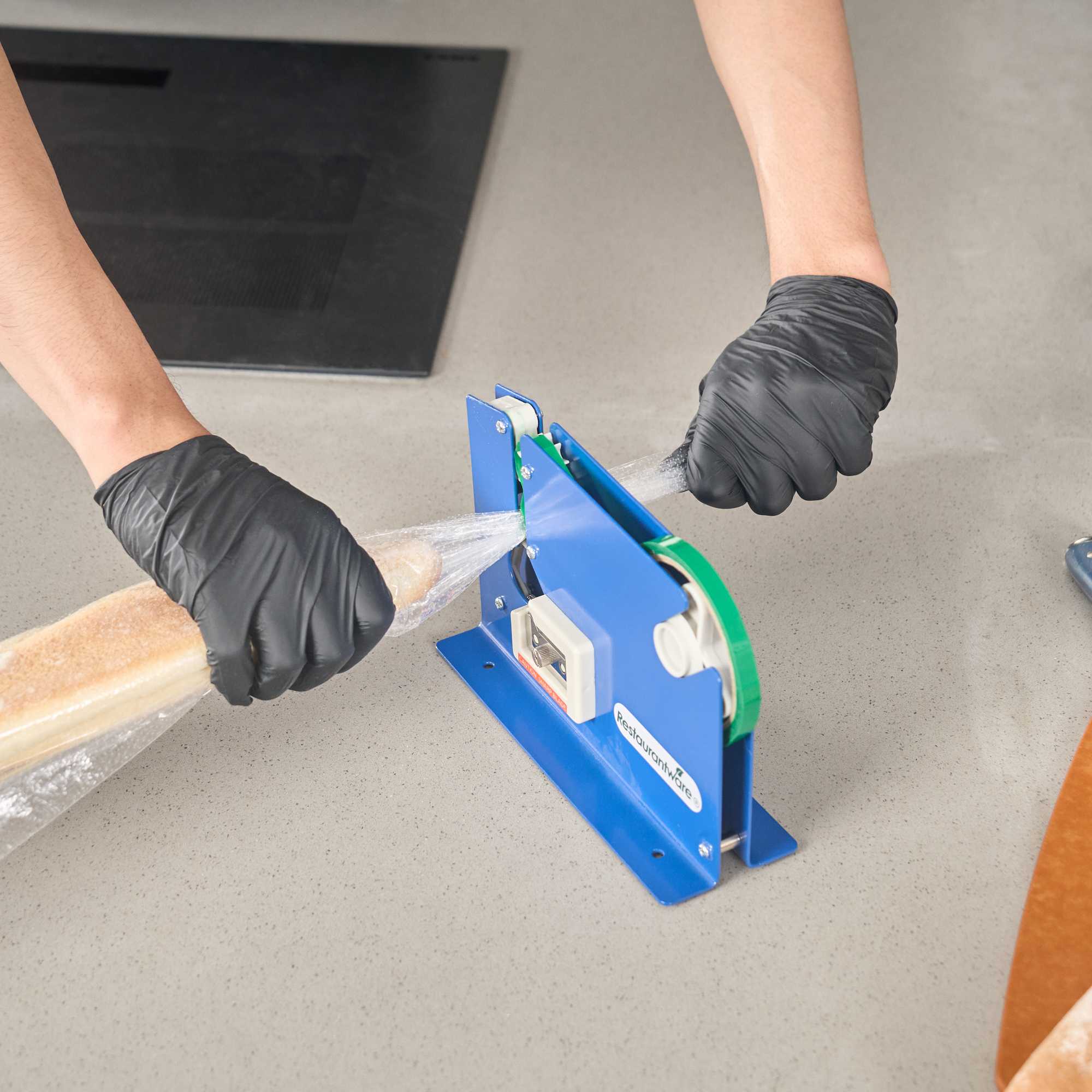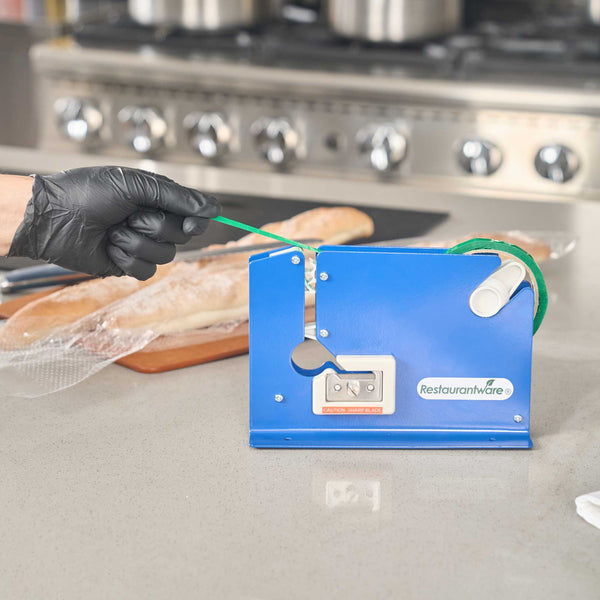 Streamline your packaging process with effortless bag sealing. The Handy Tek One-Step Operation Bag Sealing Machine offers a user-friendly design, with a built-in bag cutter that efficiently streamlines the packaging of food bags, storage bags, and more. Constructed from durable steel, this blue bag sealing machine features a non-skid base to ensure stability during high-volume use, making it an ideal choice for busy kitchens. Its ability to work with tapes up to 9 millimeters on a 3-inch core simplifies your operations. Designed for versatility, this commercial bag sealer can be used on tabletops or mounted for convenience, and its self-contained blade ensures uniform cutting with every use, enhancing the food packaging tape machine's reliability. Incorporate this sturdy, 8.6 inches long by 2.9 inches wide by 5.9 inches high machine into your workflow to boost productivity. Each order includes 1 Handy Tek One-Step Operation Bag Sealing Machine.