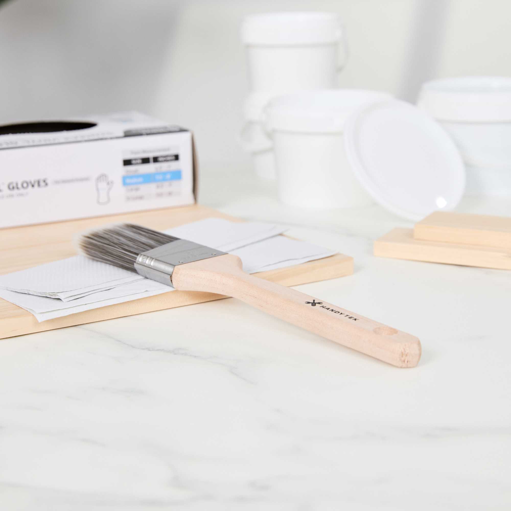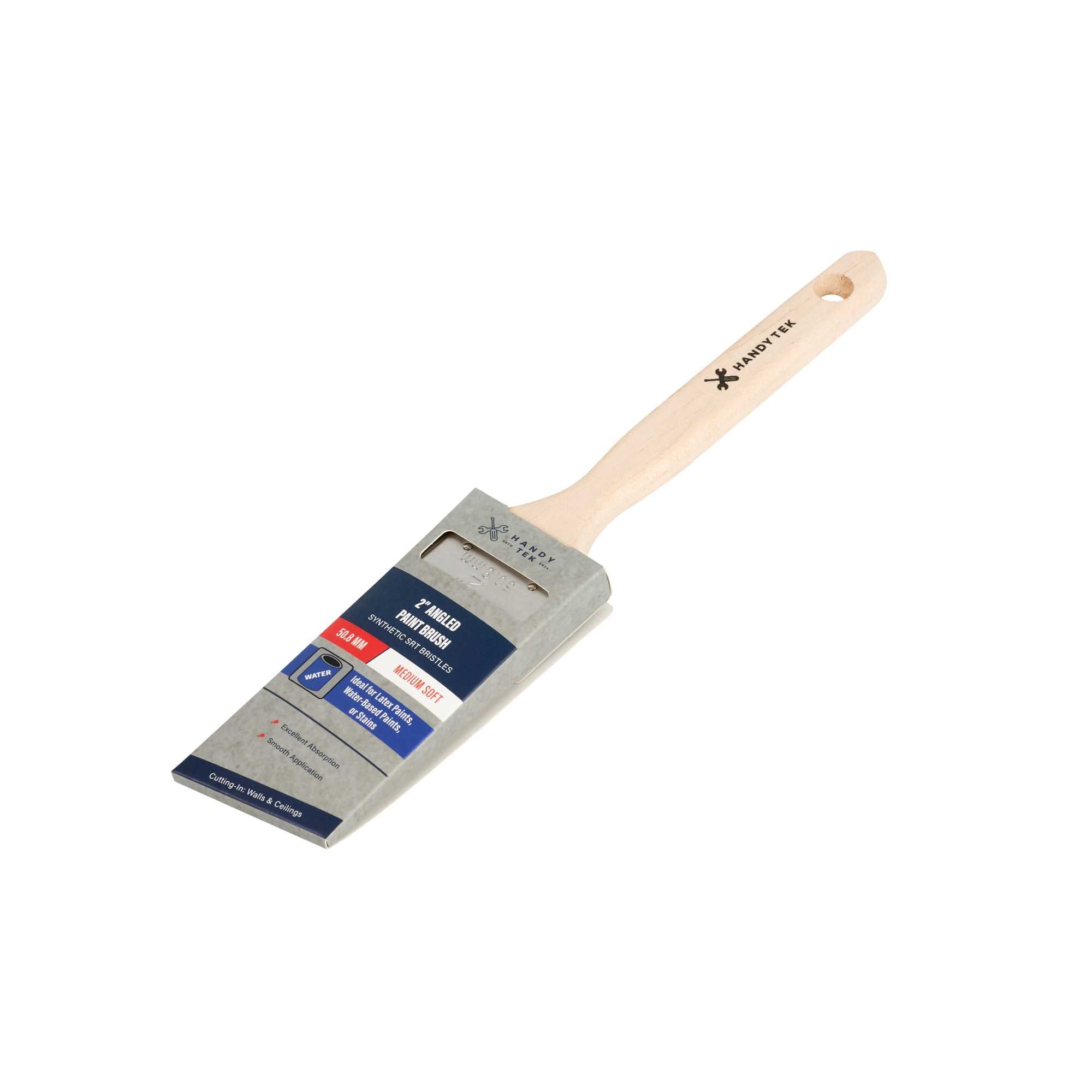 Achieve precise finishes with the Handy Tek Gray Wood Lint-Free 2 Inch Angle Paint Brush. This 2 inch angle paint brush features a high density polyester construction that ensures lint-free finishes, providing smooth coatings crucial for professional painting projects. Specifically designed as a 2 inch cutting brush, it excels with latex paint, making it ideal for kitchen remodels where clean lines are essential. The brush's high absorbing paint release minimizes waste, optimizing large painting projects by reducing excess paint usage. Constructed with a sturdy gray wood handle, this synthetic paint brush is 11.6 inches long, offering comfort and control for extended use. Optimize your painting results with this reliable tool, perfect for foodservice establishments aiming for meticulous paint applications. Sold in a 6 count box.