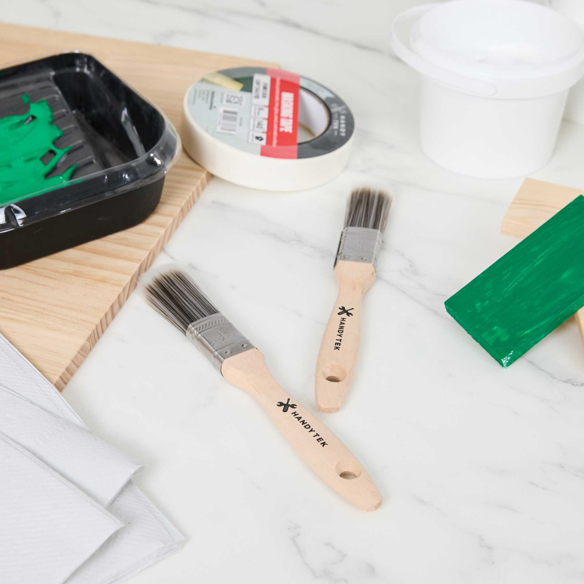 Achieve flawless wall finishes with ease. The Handy Tek Lint-Free Paint Brush is designed with high density polyester that ensures a smooth, even coating, making it an ideal 1 inch paint brush for precise applications. Featuring a lint-free design, this synthetic bristle brush maintains clean, professional finishes, eliminating the frustration of stray fibers on your work. Its high absorbing paint capability significantly reduces application time, enhancing efficiency for contractors and DIY enthusiasts alike. Measuring 8.268 inches in length, this wall painting brush offers excellent control and reach for detailed work. Constructed with a sturdy wood handle, it provides a comfortable grip and long-lasting durability during extensive projects. Streamline your painting tasks with a versatile tool that delivers quality results every time. Each order includes 6 Handy Tek Lint-Free Paint Brush.
