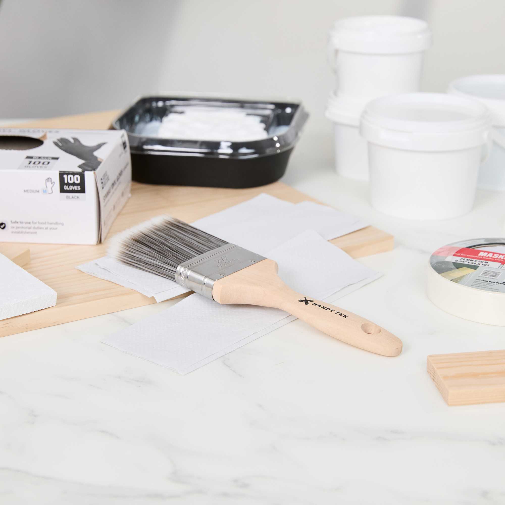 Achieve flawless finishes with the Handy Tek Lint-Free Paint Brush. This 2.5 inch paint brush, crafted from high-density polyester, delivers a lint-free application, ensuring a pristine coat every time. Its exceptional absorption and release properties make it an ideal flat paint brush for those seeking efficient coverage and smooth results. Tailored for use with latex paint, this trim paint brush excels in delivering even and vibrant finishes, enhancing your painting projects with ease. The ergonomic handle, made from sturdy wood, offers enhanced control and comfort, reducing fatigue during extensive painting sessions. With dimensions of 10 inches in length and 2.48 inches in width, this gray paint brush is perfectly sized for precision in tight corners and detailed work. Elevate your painting experience by investing in this reliable tool. Sold in a 1 count box.