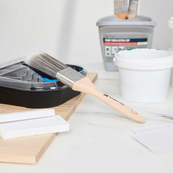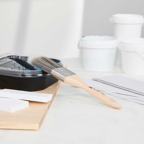Achieve flawless results with every stroke. The Handy Tek Lint-Free Paint Brush is expertly crafted to provide smooth and efficient coverage, making it the ideal 2 inch paint brush for foodservice settings. Its high-density polyester bristles ensure a seamless paint application, while the lint-free design prevents any debris from contaminating sensitive areas. With its exceptional paint absorption, this synthetic paint brush allows for uniform distribution, reducing the need for multiple coats and saving valuable time in busy kitchens. Measuring 9.37 inches in length, this wall painting brush is equipped with an ergonomic handle that offers superior control and comfort, enhancing precision in detailed tasks. Constructed from durable wood, this brush is perfect for use with latex paint, providing a reliable tool for restaurant renovations or touch-ups. Elevate your painting projects with this essential tool in the kitchen or dining area. Sold in a 6 count box.