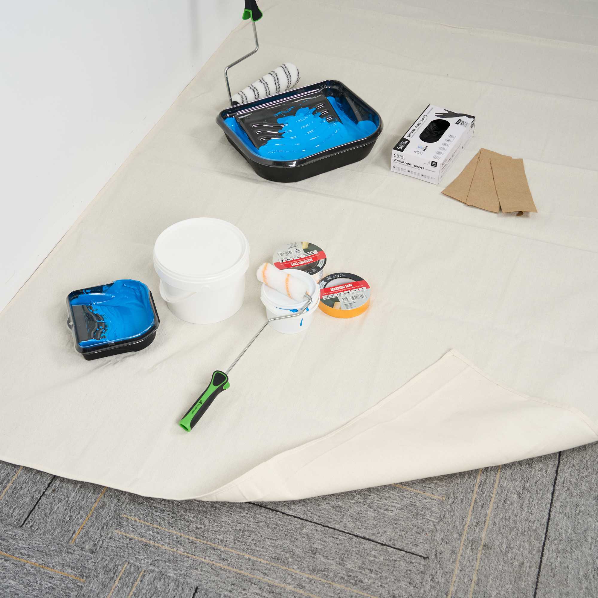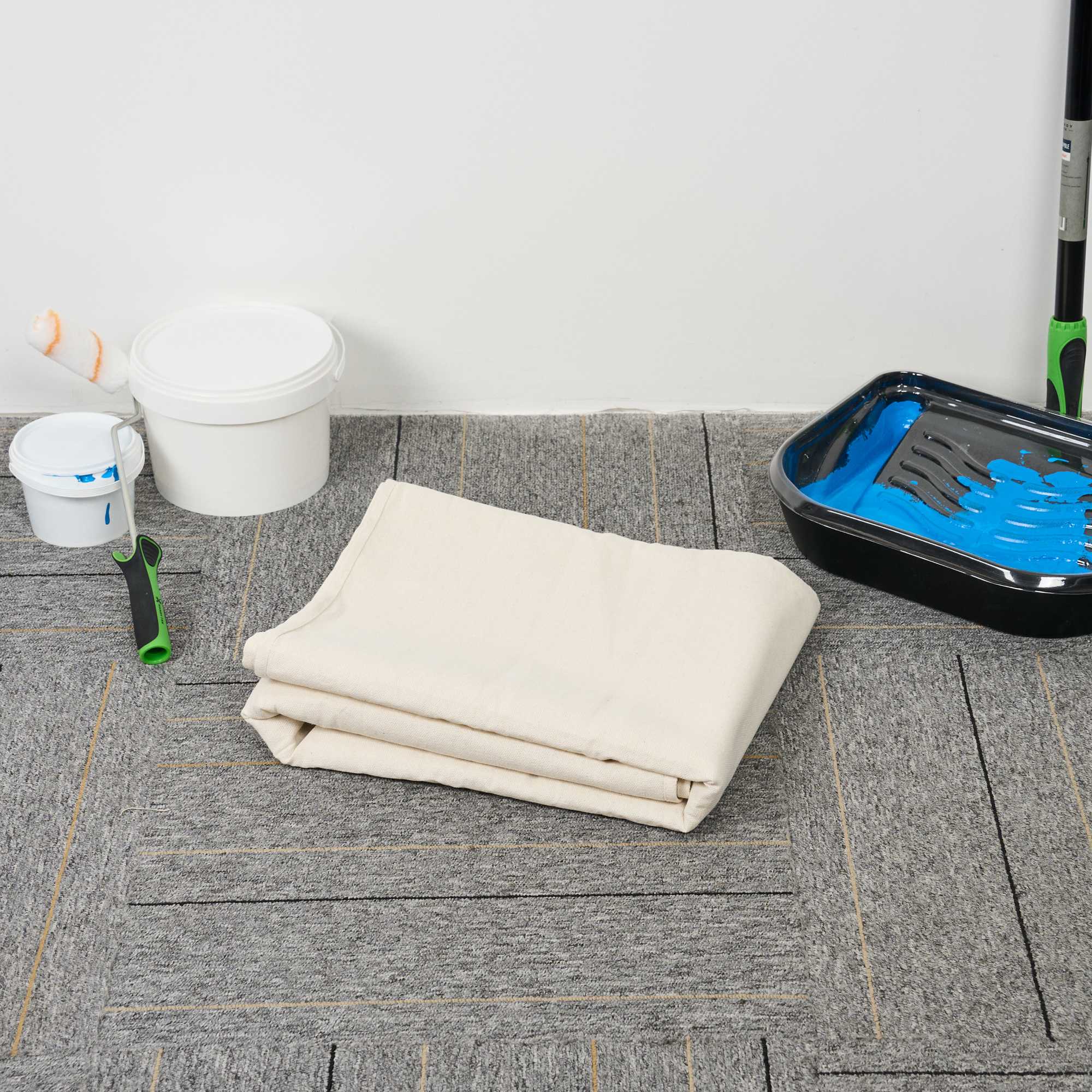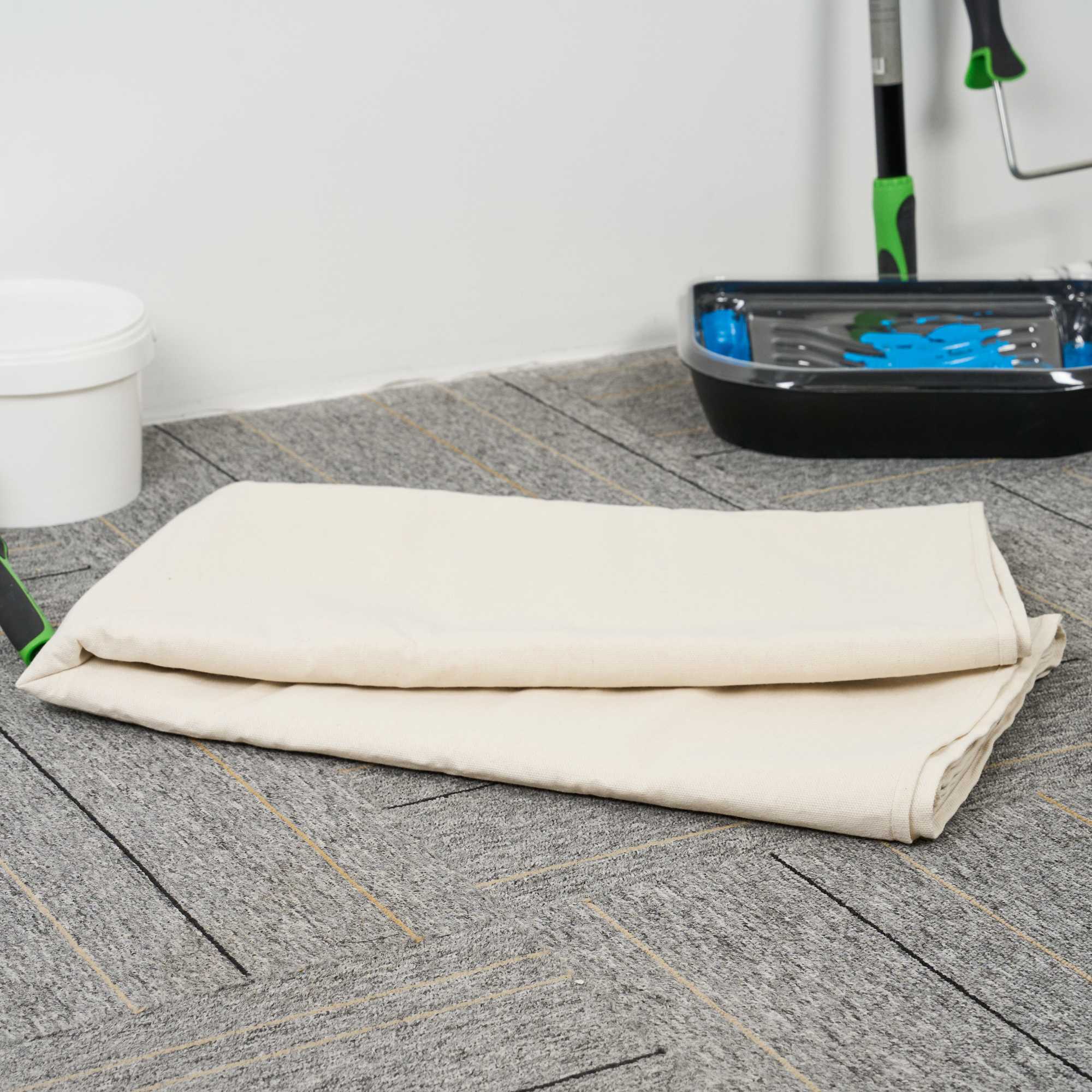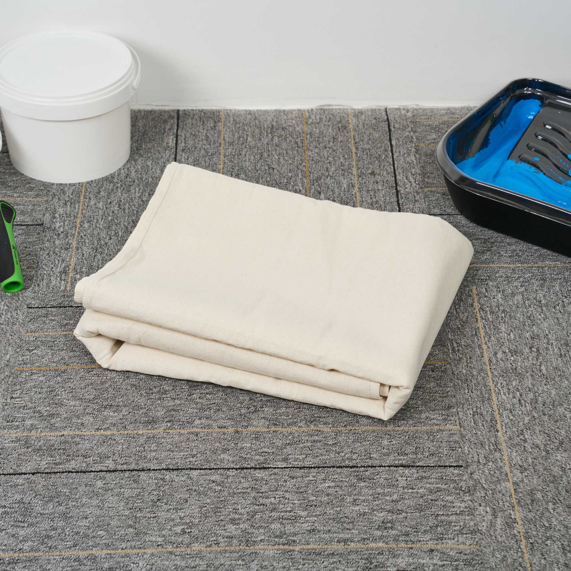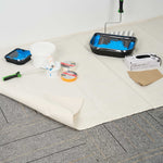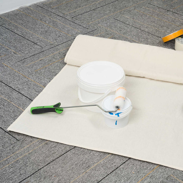 Our Handy Tek White Cotton Canvas Drop Cloth provides reliable surface protection for a variety of indoor tasks. This multi-purpose floor cover shields carpets, furniture, and flooring. Made from cotton canvas, this drop cloth features hemmed and double-stitched edges to prevent fraying for long-term use. Built with heavy weight material, this tarp sheet stays in place during use and offers extra protection against spills and dust. Ideal for painting jobs, this canvas sheet absorbs drips and dust to keep surfaces clean. As a reusable painting cloth, it can be washed and used again for multiple projects. Measuring 48.03 inches in length by 144.09 inches in width, this canvas drop cloth offers ample coverage for large areas. Sold in a 12 count box.