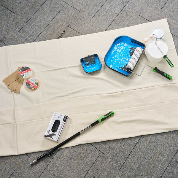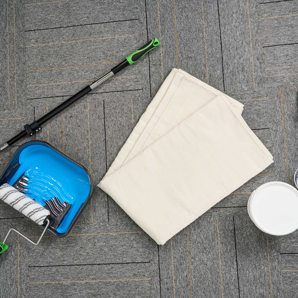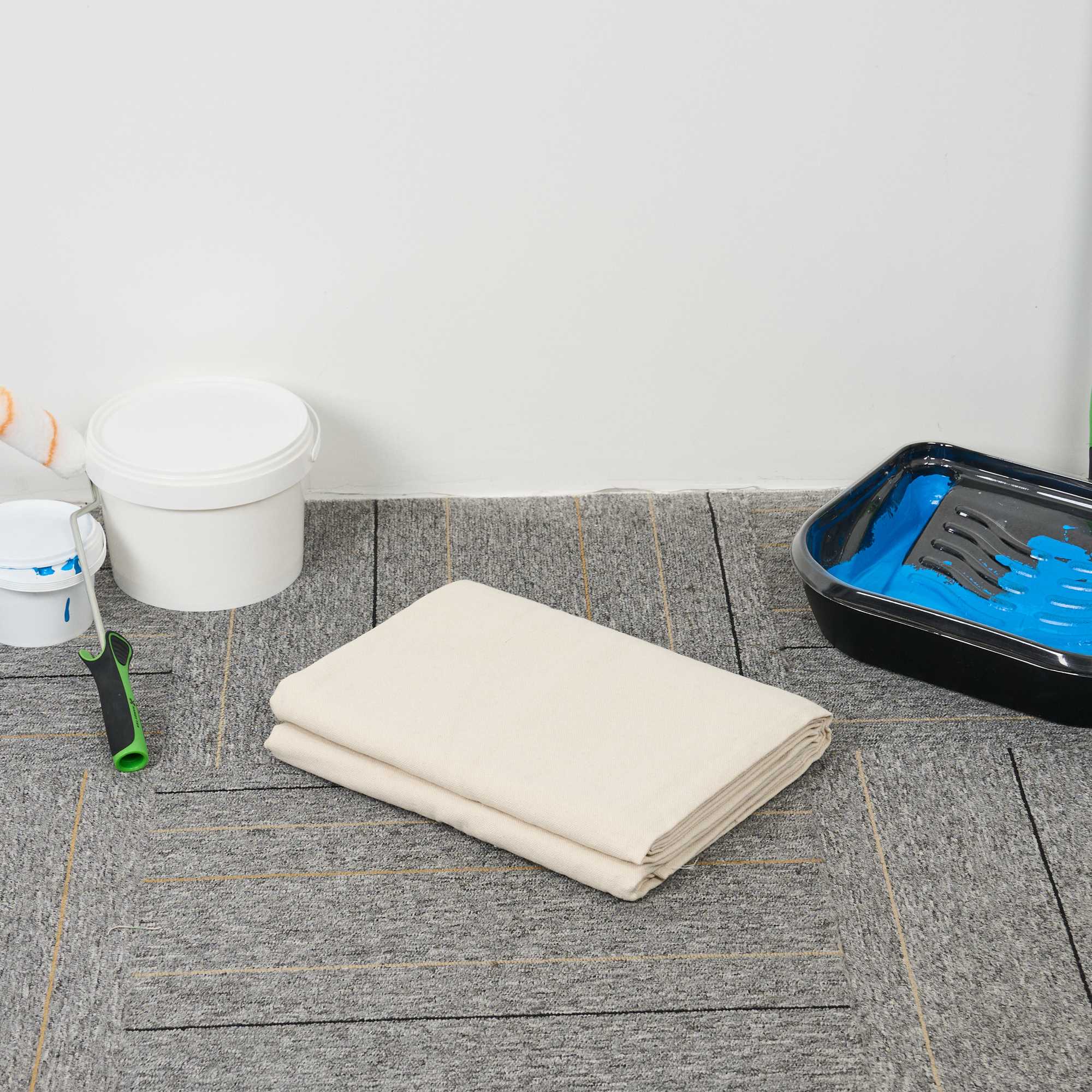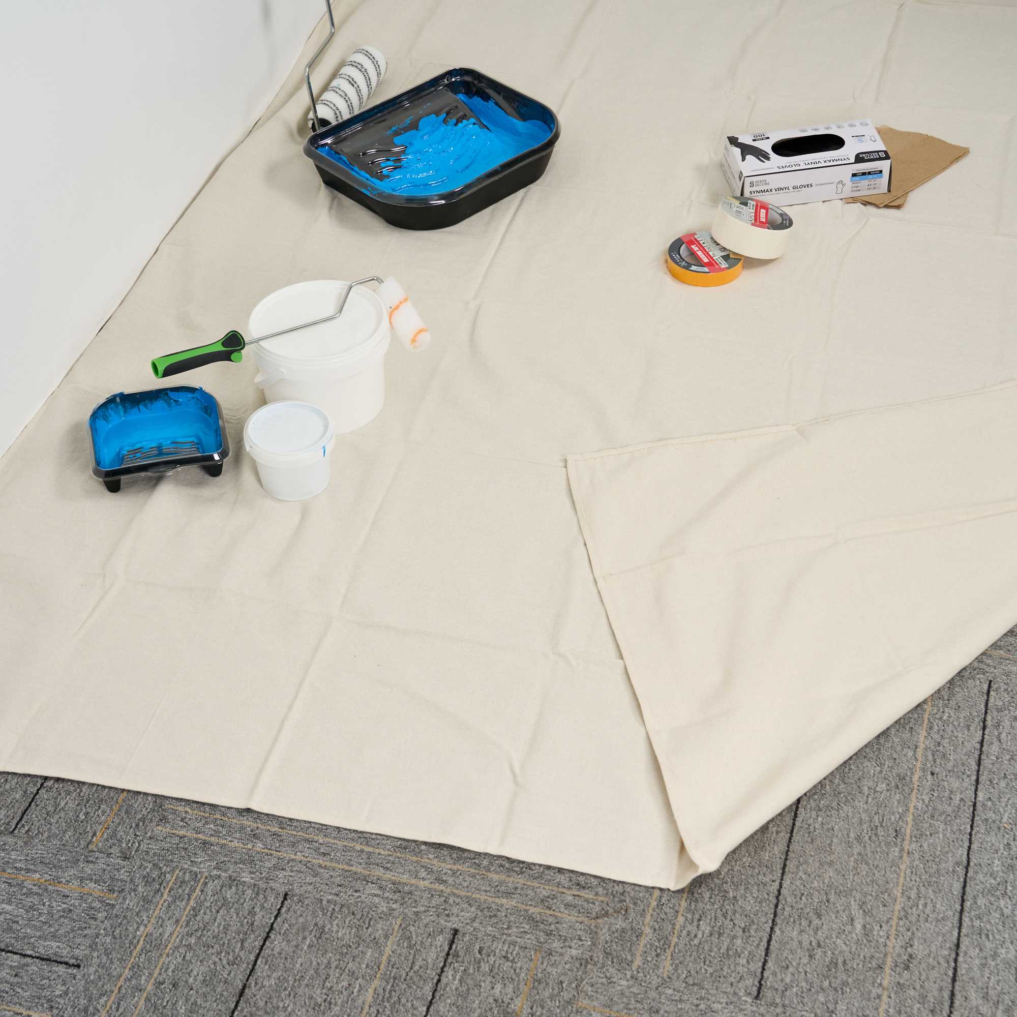 Protect surfaces with confidence using our Handy Tek White Cotton Canvas Drop Cloth, designed for a wide range of tasks in commercial and foodservice settings. This multi-purpose drop cloth serves as a great floor cover, effectively shielding surfaces like floors, carpets, and furniture from paint, spills, and dust. With its durable design, this painting sheet features hemmed and double-stitched edges, enhancing its strength and stopping fraying for long-lasting use. Crafted from heavyweight canvas, this tarp sheet stays in place and provides added protection against leaks and debris. Not only does this white tarp sheet absorb spills and dust, but it also ensures that surfaces underneath remain clean and pristine. Designed for convenience, this worksite cover is washable and reusable, making it a reliable choice for multiple projects. Measuring 72.05 inches in length by 107.87 inches in width, this drop cloth provides ample coverage for any task. Sold in a 12 count box.