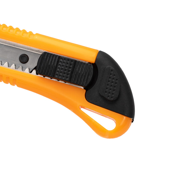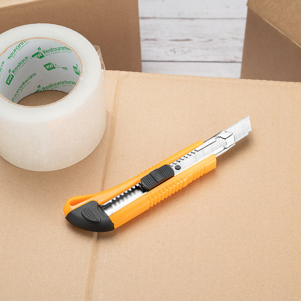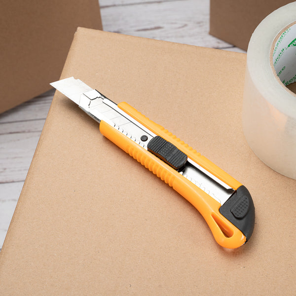 Cleanly cut all types of materials using our Handy Tek Yellow Utility Knife / Box Cutters. These box cutter knives feature an anti-slip handle that provides you with a secure grip and full control when completing projects to prevent dangerous accidents. With a retractable 18-millimeter blade, these utility knives can be adjusted to any length to fit your cutting needs. These retractable box cutters have a locking mechanism that ensures the blade stays in position when you're cutting through thick materials. With a razor-sharp blade, these maintenance knives cleanly and smoothly cut all types of materials which eliminates the need to use a lot of force. These retractable box cutters feature a yellow finish, making them easy to identify in your storage room or toolbox. Measuring 6.5 inches long by 1.4 inches wide, these anti-slip knives are perfect for keeping in your tool belt or pocket so they are within reach. Sold in a 4 count box.