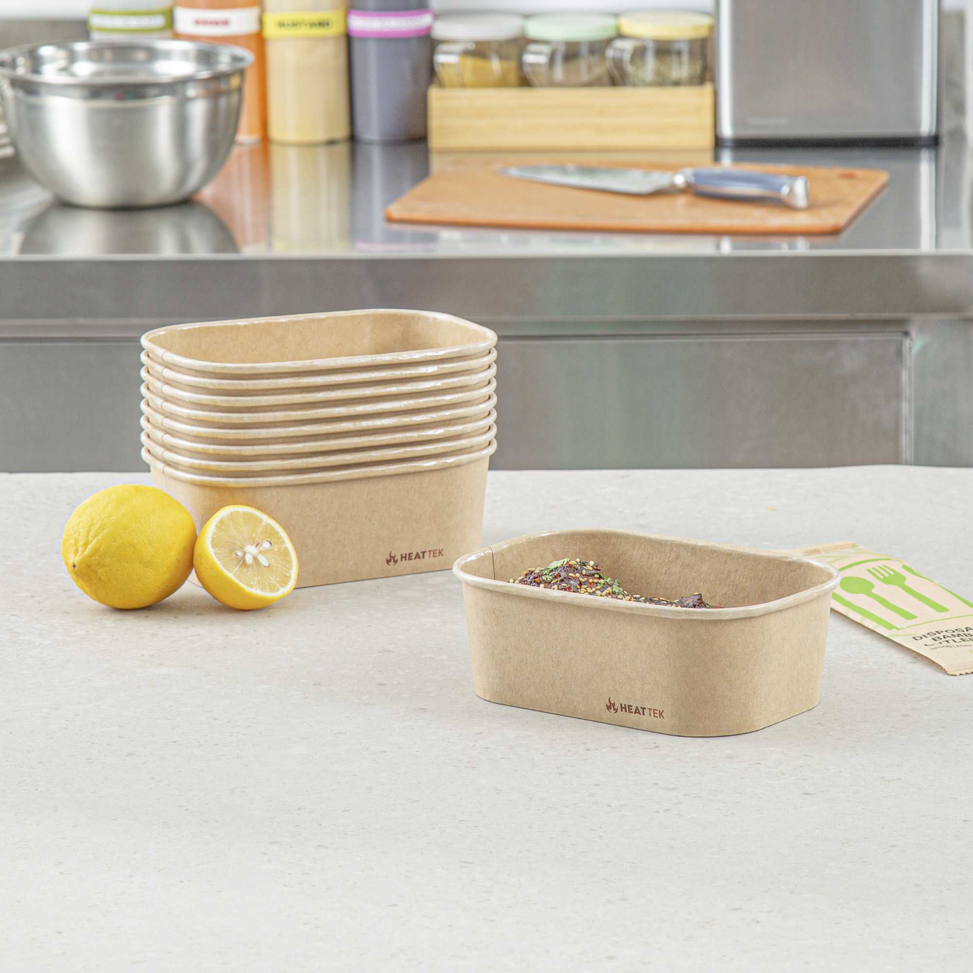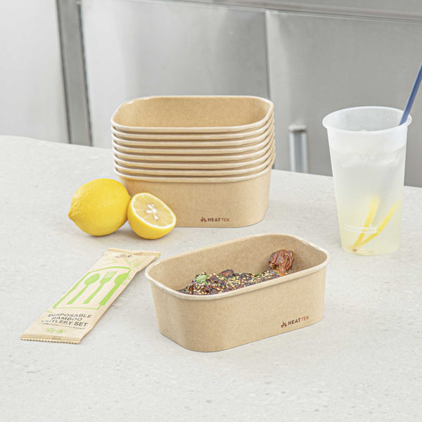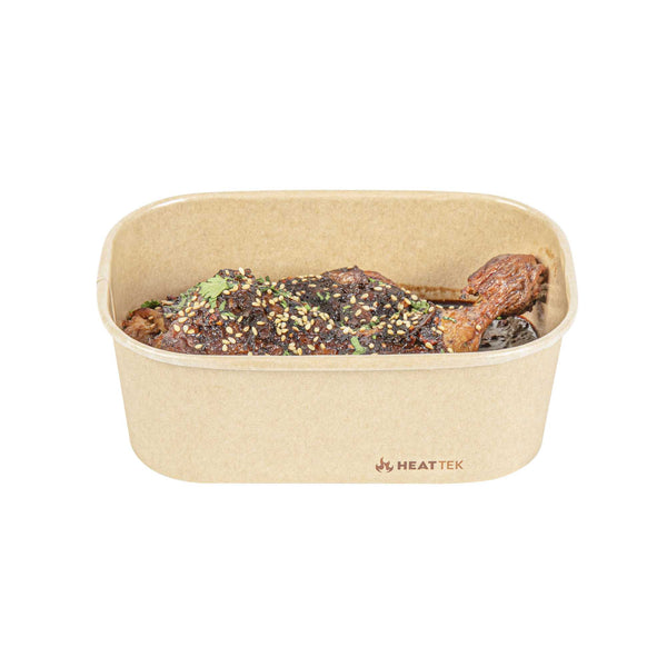 Enhance your food presentation with eco-friendly, oven-safe containers. Heat Tek Greaseproof Oval Takeout Containers feature greaseproof lining that prevents leaks from oils and sauces, ensuring your kitchen remains neat and professional. Crafted from sturdy kraft paper, these containers can withstand oven heat up to 460 degrees Fahrenheit, allowing for seamless reheating or cooking directly within the container, perfect for takeout services. With a stackable design, these greaseproof kraft containers save valuable storage space, making organization efficient in busy kitchens. Measuring 6.75 inches long, 4.75 inches wide, and 2.25 inches high, these oval meal prep containers hold up to 25 ounces, ideal for serving generous portions. The natural kraft paper not only provides a sustainable option for environmentally conscious operations but also ensures durability during transport. Choose Heat Tek for reliable and sustainable food packaging, ideal for takeout and catering. Each order includes 25 Heat Tek Greaseproof Oval Takeout Containers.