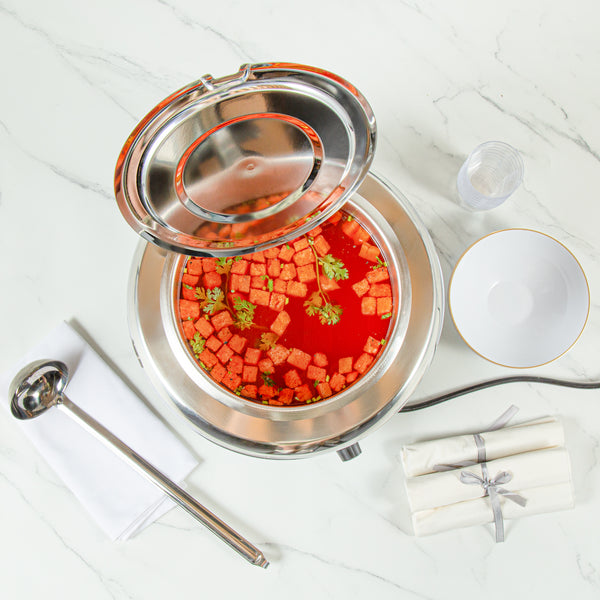Experience precise temperature control with our Avantco Soup Kettle Warmer. The Hi Tek 11 Qt Soup Kettle Warmer allows you to effortlessly maintain soups, gravies, and stews at optimal serving temperatures, thanks to its manual control dial. This commercial soup warmer is ideal for high-traffic restaurants and catering services, ensuring your dishes stay hot and ready for service. With a built-in hinged lid, this hinged lid soup kettle simplifies serving and refilling, minimizing downtime and enhancing efficiency. Its removable inset guarantees a hassle-free cleaning process for your staff, saving valuable time in busy environments. Constructed from durable stainless steel with a sleek black finish, this soup warmer combines style with functionality, fitting seamlessly into any buffet or kitchen setup. Elevate your foodservice operations with this essential piece of equipment. Each order includes 1 Hi Tek 11 Qt. Soup Kettle Warmer.