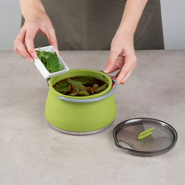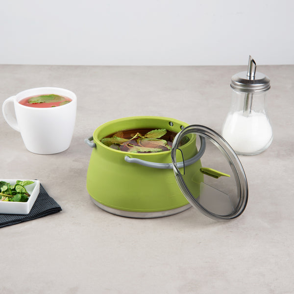 1L GREEN SILICONE COLLAPSIBLE KETTLE - WITH LID