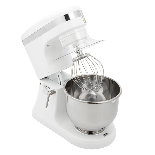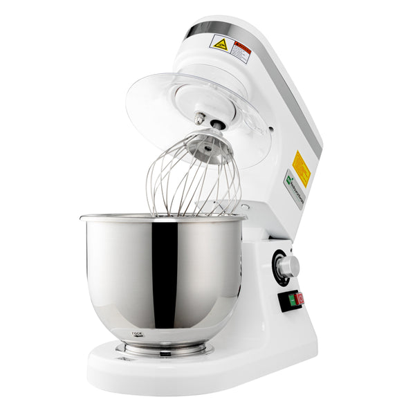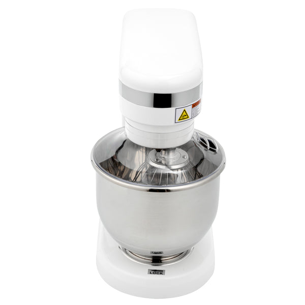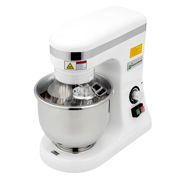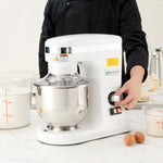 This commercial stand mixer features a rotating motor and a stand to keep the bowl in place, allowing for a hands-free mixing process. Avoids hand strain and lets you multitask!