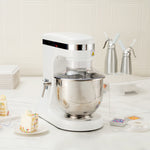 These stand mixers include 3 attachments for multipurpose use: dough hook, whisk, and beater. Use the dough hook to make pizza dough or the beater to mix cake batter!