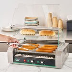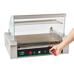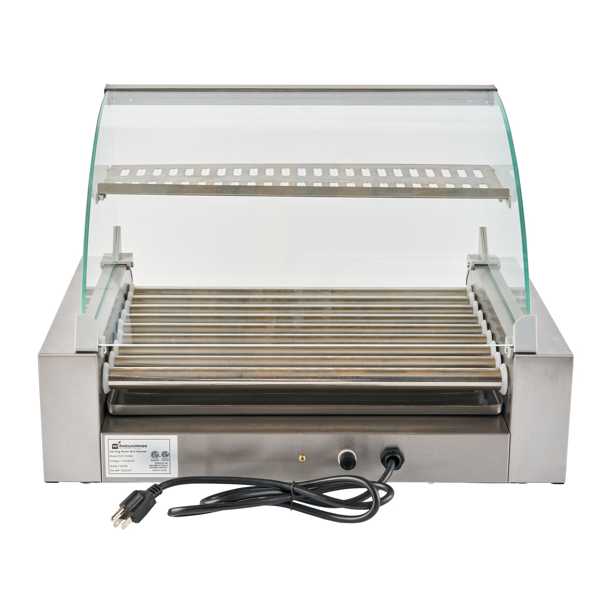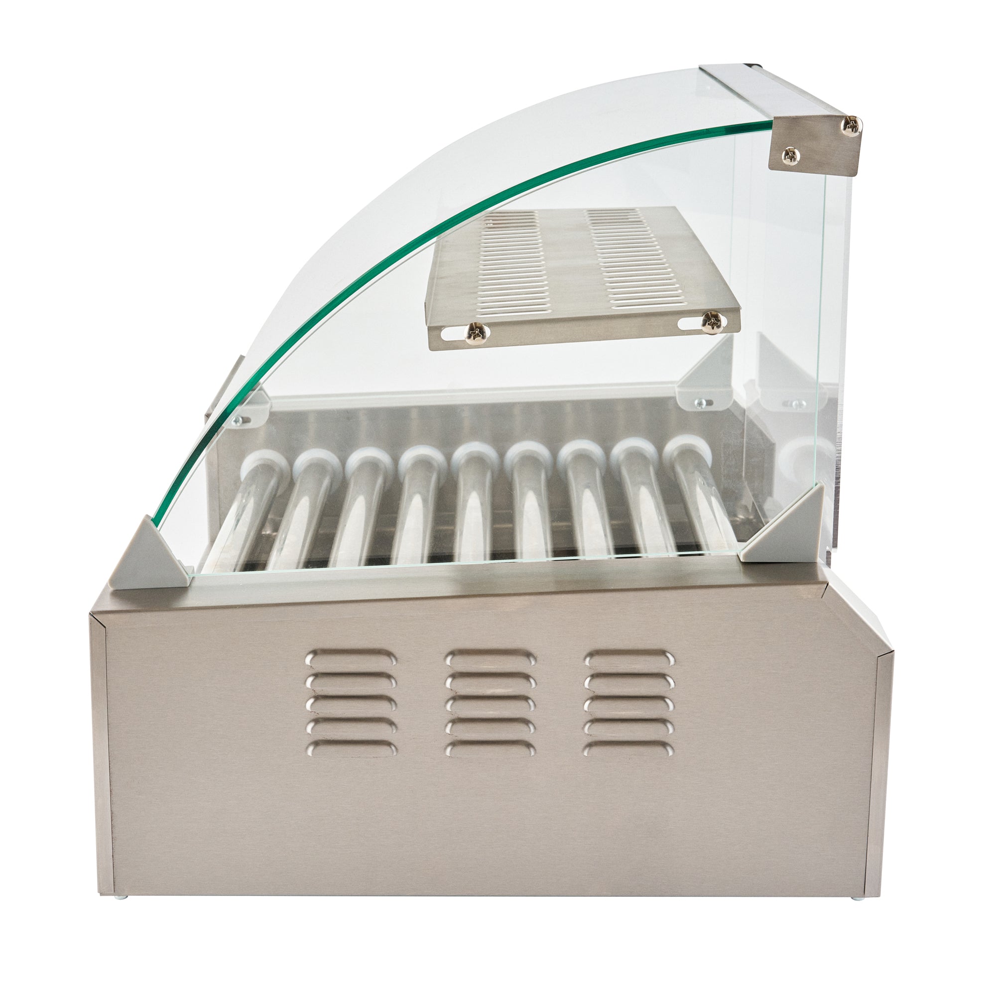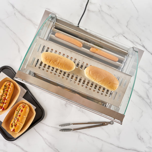 HOT DOG ROLLER GRILL WARMER - FITS 24, CURVED GLASS, SNEEZE GUARD
