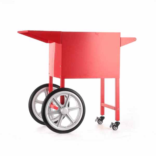 This popcorn cart securely locks our compatible popcorn machine in place for a stable fit. Beautifully display and easily transport your popcorn maker!