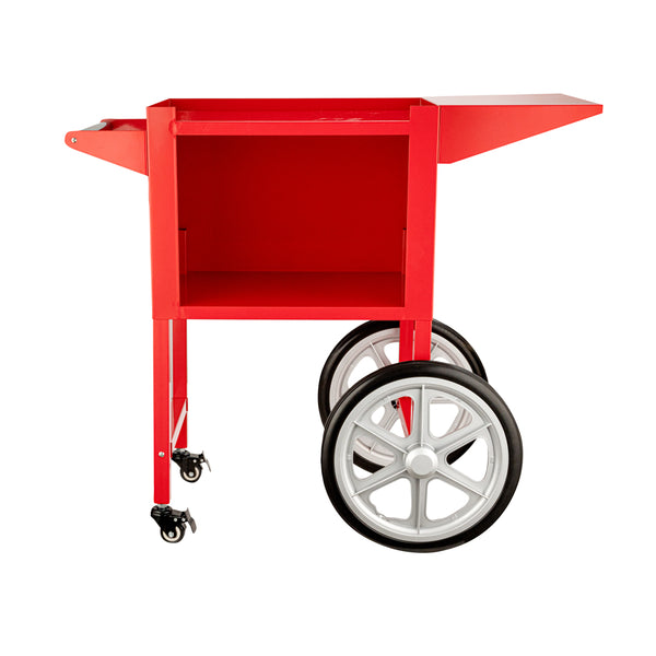 Take your popcorn maker to the next level with our Hi Tek Red Stainless Steel Cart. This popcorn maker cart securely fits and locks your popcorn machine (SKU: RWT1015R) for simplified and efficient use. This popcorn machine cart features an inner compartment that allows you to easily store extra kernels, oils, or popcorn cups to maintain a neat presentation. With a side shelf, this popcorn popper cart provides you with extra space for prepping orders or displaying popcorn buckets. This popcorn machine stand beautifully showcases your popcorn maker, allowing festival goers, sports fans, and carnival guests to observe their popcorn being made. Featuring 2 large wheels, this popcorn maker stand can be maneuvered with ease throughout locations. Equipped with 2 locking casters, this popcorn maker on wheels ensures steady and secure placement while in use. This red popcorn popper stand measures 36.9 inches in length by 17.3 inches in width by 32.5 inches in height. This popcorn machine cart is shipped unassembled. Sold in a 1 count box.