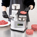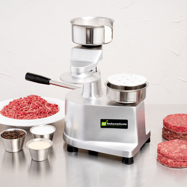 - Molds 1/4 pound patties to ensure consistent portions for uniform cooking