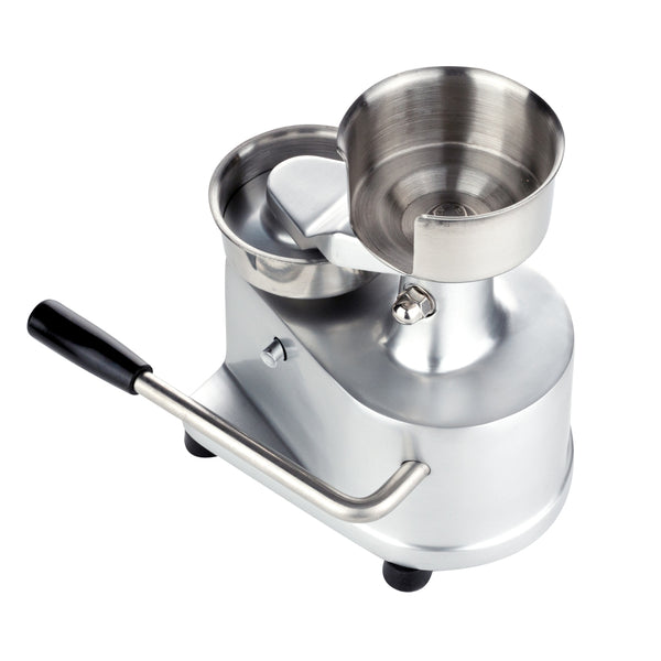 This burger press patty maker features a stainless steel bowl and anodized aluminum base, ensuring it is long-lasting and durable. Perfect for everyday use at your restaurant or home.