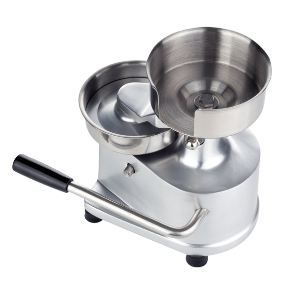 This burger press patty maker features a stainless steel bowl and anodized aluminum base, ensuring it is long-lasting and durable. Perfect for everyday use at your restaurant or home.