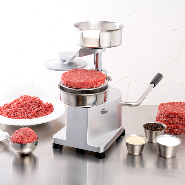 Available in 4 and 5 inches in diameter, our hamburger patty presses allow you to consistently and continuously prep ¼ pound or ½ pound patties. Save time and avoid food waste!