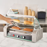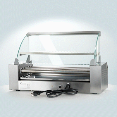 HOT DOG ROLLER GRILL WARMER - FITS 12, CURVED GLASS, SNEEZE GUARD