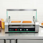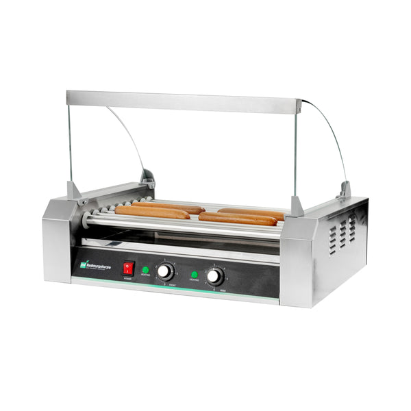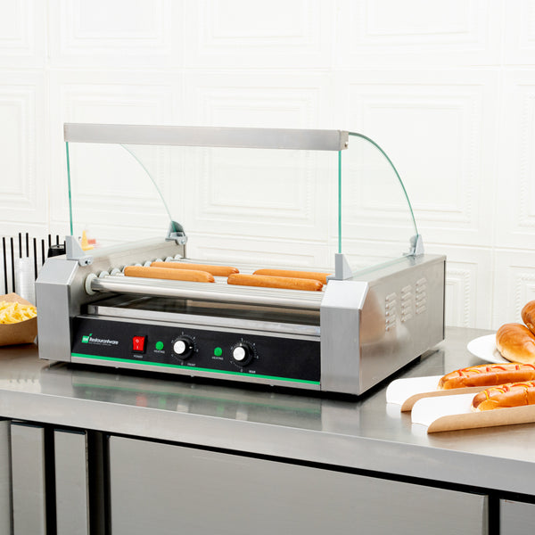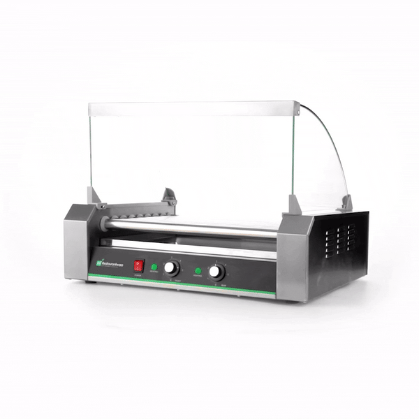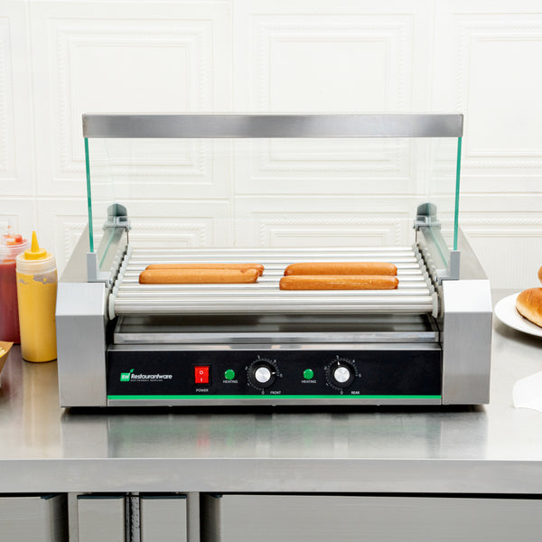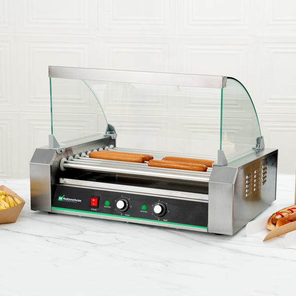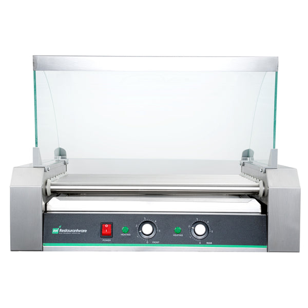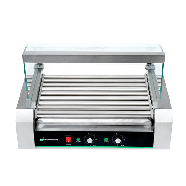 Featuring dual temperature controls, this hot dog roller grill allows for independent front and rear operations. Conveniently cook two meals at once!