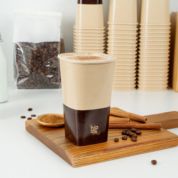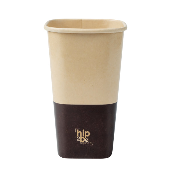 Stylishly serve hot and cold beverages with our Hip 2 Be Square 16 oz Kraft and Brown Paper Hot / Cold Drinking Cups. These paper cups feature a unique square design to enhance your drinks at your foodservice establishment. Equipped to hold both hot and cold drinks, these disposable cups are perfect for serving coffee, tea, or lemonade. These coffee cups have a single wall construction to offer a secure grip while taking drinks on the go. Made with a double PE lining, these square paper cups avoid any unwanted leakage. These disposable paper cups are conveniently stackable to save on storage space in your kitchen. With a unique kraft and brown finish, these square coffee cups fit in with the rest of your supplies. Pair these 16-ounce cups with our coordinating Hip 2 Be Square lids to keep beverages secure during transport (SKU: RWA1108B and RWA1109C). These hot and cold cups measure 3.25 inches long by 3.25 inches wide by 5.5 inches tall. Sold in a 500 count box.