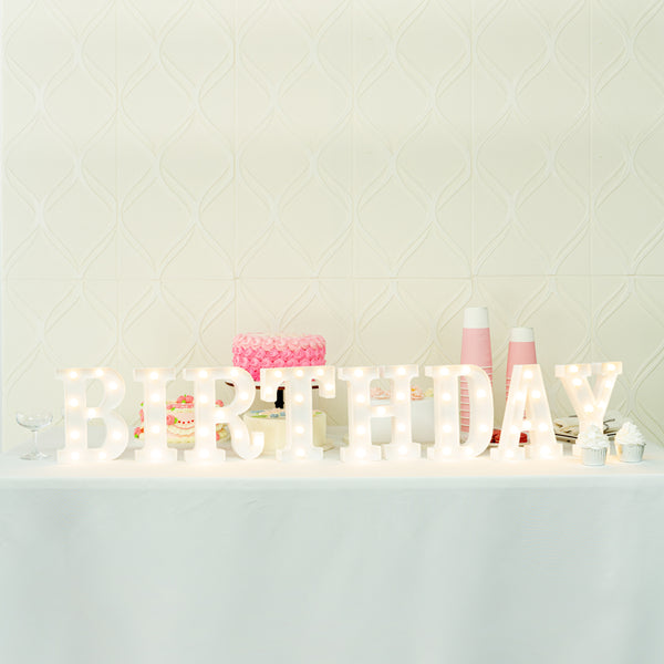 Our collection of light-up letters and numbers contains the whole alphabet and numbers 0 through 9. Combine these letters and numbers to spell words and display ages or anniversary dates.