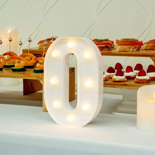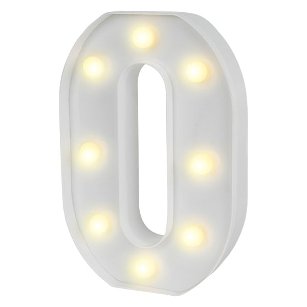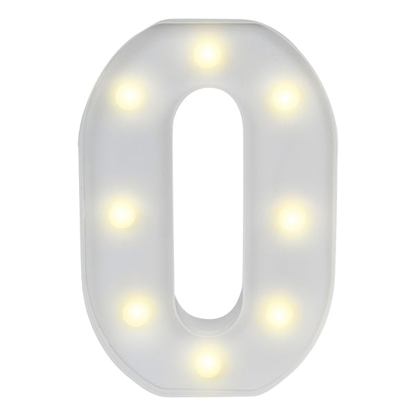 Get creative with decorations by using our Illumify White LED Marquee Letter O Sign. Built into the letter O, this light up letter can be put together with our other Illumify letters and numbers to create a range of names, initials, or messages. With LED bulbs, this light up marquee letter is energy conscious and can last well into the night. Not to mention, the warm glow of the bulbs helps set the ambiance of any event. Thanks to its keyhole slot, this lighted letter can be hung on walls or placed on hard, level surfaces such as tables. Crafted from premium plastic, this letter light can be used for countless parties while still remaining touchproof and standing up to dust. This big light-up letter is powered by batteries, allowing you to place it in areas without an electrical outlet. The on/off switch of this marquee light can be simply flicked to mark the start or end of your celebrations. Featuring a white finish, this LED letter for the wall adds the perfect touch to your decorated areas. This light-up letter measures 5.75 inches long by 1.2 inches wide by 8.75 inches tall. Sold in a 1 count box. Powered by 2 AA batteries (not included).