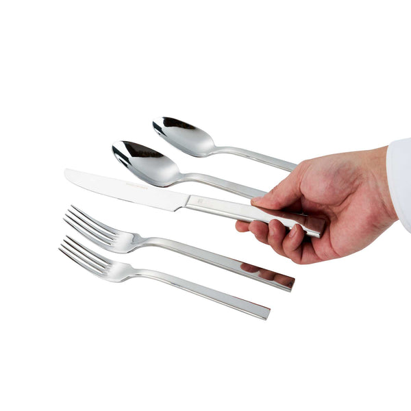 • 10-piece cutlery set includes 2 dinner spoons and forks, 2 dessert spoons and forks, and 1 table knife