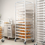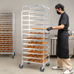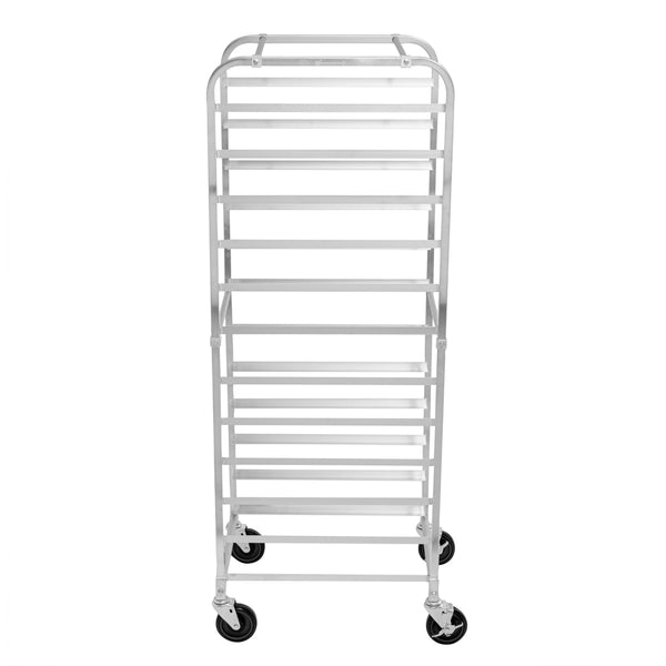 Equipped with four casters, these bun pan racks can be wheeled around to facilitate transporting food or supplies across the kitchen. Plus, the casters include two brakes for additional reliability.