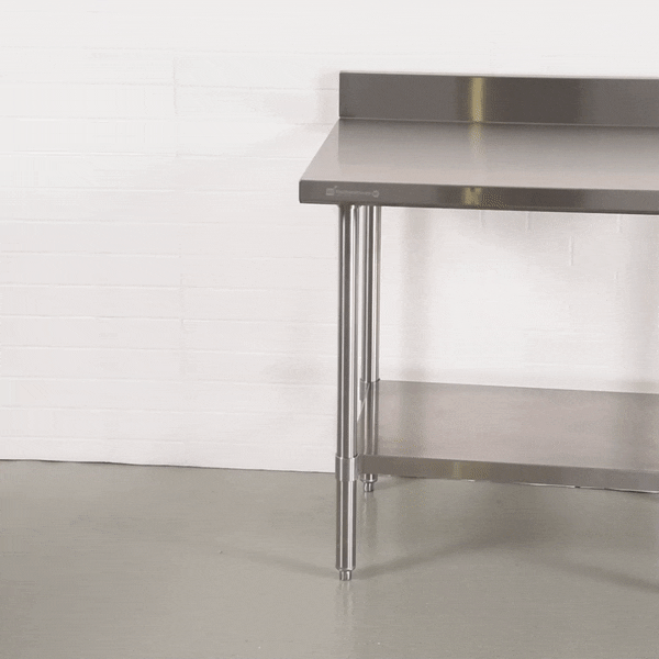 The top shelf of these work tables holds hundreds of pounds of heavy equipment such as espresso machines or mixers. Most of our metal tables have an undershelf for extra storage for bowls, bins, or ingredients.
