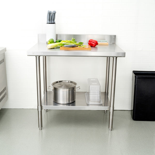 These food prep tables have a smooth surface that can be easily wiped after rolling dough or mixing batter. Not to mention, a few of our tables are equipped with a backsplash to keep ingredients from falling to the floor.
