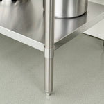 The top shelf of these work tables holds hundreds of pounds of heavy equipment such as espresso machines or mixers. Most of our metal tables have an undershelf for extra storage for bowls, bins, or ingredients.