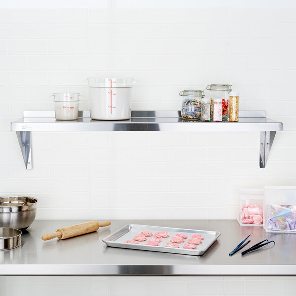 With many sizes to choose from, our food shelves can fit perfectly into areas over your stove, prep area, work table, and more. Select the shelf that fits your needs!