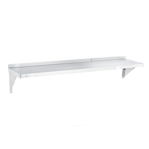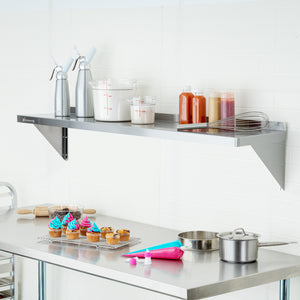 Store plenty of items in a small space with our Kitchen Tek 16-Gauge 430 Stainless Steel Wall Shelf. Perfect for using it as a serving shelf in your food truck, this kitchen wall mount is crafted from 16-gauge 430 stainless steel. Capable of sustaining up to 315 pounds, this stainless steel wall mount shelf can hold boxes of masks, gloves, cups, take out boxes, and more. Designed with rounded edges, this commercial wall shelf keeps you from being injured when grabbing ingredients. This kitchen wall mount can be quickly wiped, making it easy to keep it clean. Featuring 2 support brackets, this restaurant shelf can hold a lot of weight without getting loose. For easy assembly, this kitchen wall mount can be attached in just a few minutes. This commercial shelf measures 12 inches wide by 60 inches long and is 10 inches tall. Sold in a 1 count box.