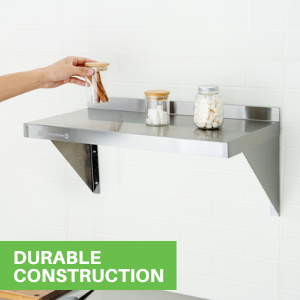 To maintain long-lasting quality, these kitchen shelves are constructed from durable 430 stainless steel. Plus, they are 16- or 18-gauge, making them heavy-duty and perfect for regular use.
