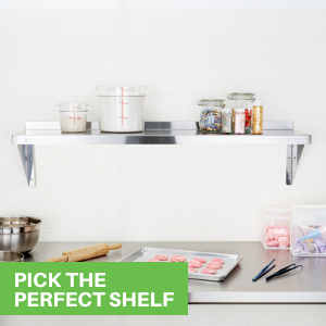 With many sizes to choose from, our food shelves can fit perfectly into areas over your stove, prep area, work table, and more. Select the shelf that fits your needs!