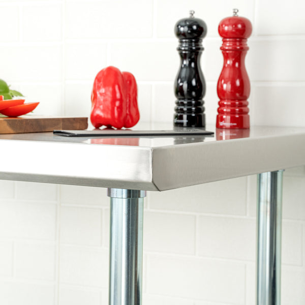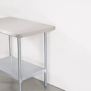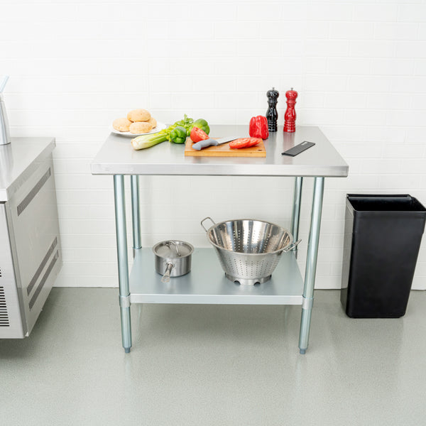 The top shelf of these work tables holds hundreds of pounds of heavy equipment such as espresso machines or mixers. Most of our metal tables have an undershelf for extra storage for bowls, bins, or ingredients.