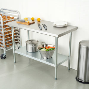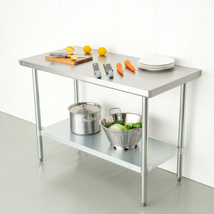 Kitchen Tek 18-Gauge 304 Stainless Steel Commercial Work Table - Heavy Duty, Galvanized Legs, Undershelf - 24