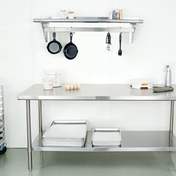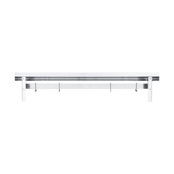 Made from premium stainless steel, these wall-mounted pot racks are designed to last in your foodservice establishment. The strong material ensures you don't have to worry about replacing your shelving.