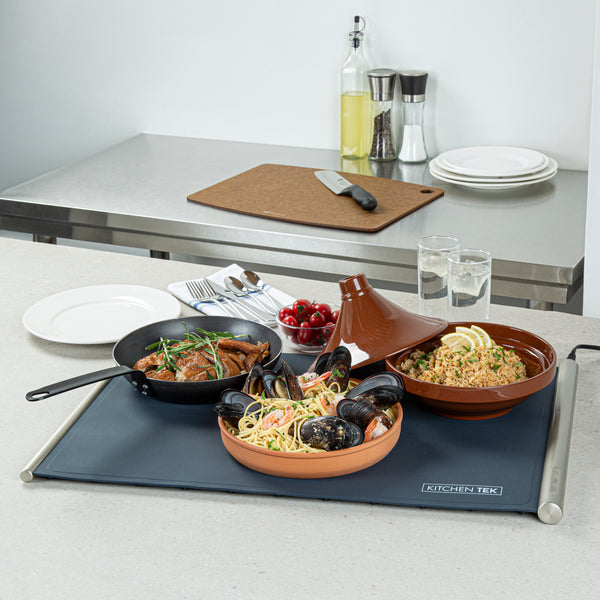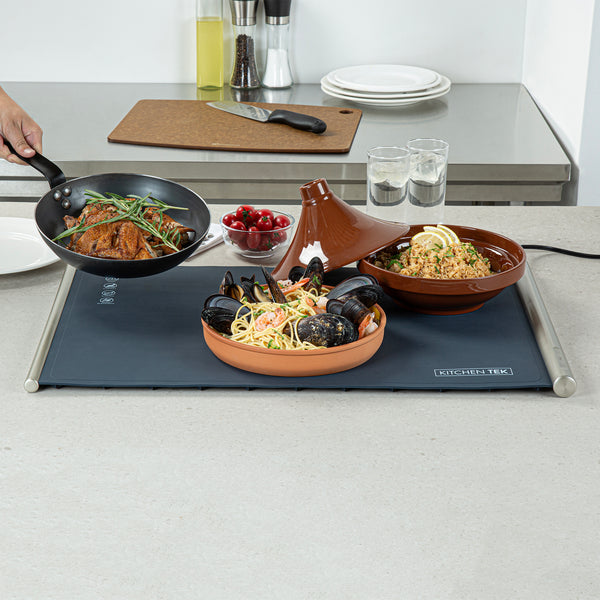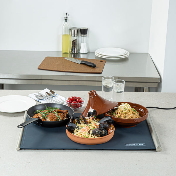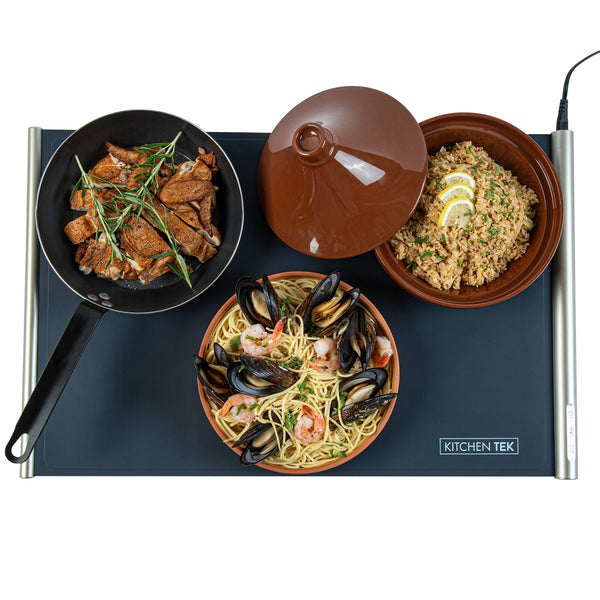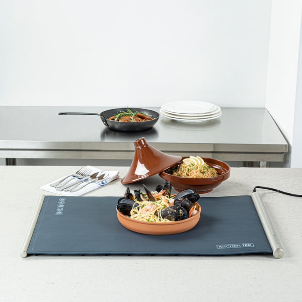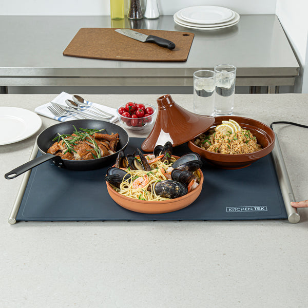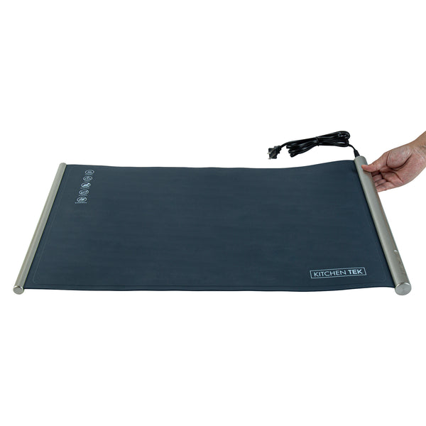 Maintain optimal food temperatures effortlessly with our Kitchen Tek Rollable Electric Warming Mat. This electric warming mat features an interactive touch panel that allows for precise temperature control, ensuring your dishes are perfectly heated for any service. Crafted from flexible silicone, this mat offers a rollable design, making setup quick and storage convenient, which is ideal for busy kitchens. Its efficient 120V operation conserves energy while providing consistent warmth across its 26.22-inch by 16.65-inch surface, perfect for restaurants and catering events requiring an electric buffet warmer. The non-slip surface adds stability, minimizing spills and enhancing safety during service. Designed with portability in mind, this foldable electric warming mat is your go-to solution for keeping food warm at buffet lines or off-site catering venues. Enhance your foodservice operations with efficiency. Each order includes 1 Kitchen Tek Rollable Electric Warming Mat.