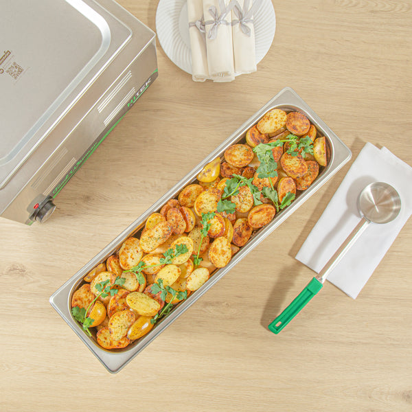Provide an added layer of protection and freshness! These metal buffet pans can be paired with compatible lids to help keep your food secure and maintain optimal temperature during service.