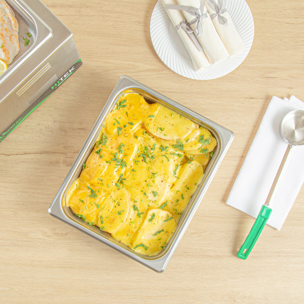 Provide an added layer of protection and freshness! These metal buffet pans can be paired with compatible lids to help keep your food secure and maintain optimal temperature during service.