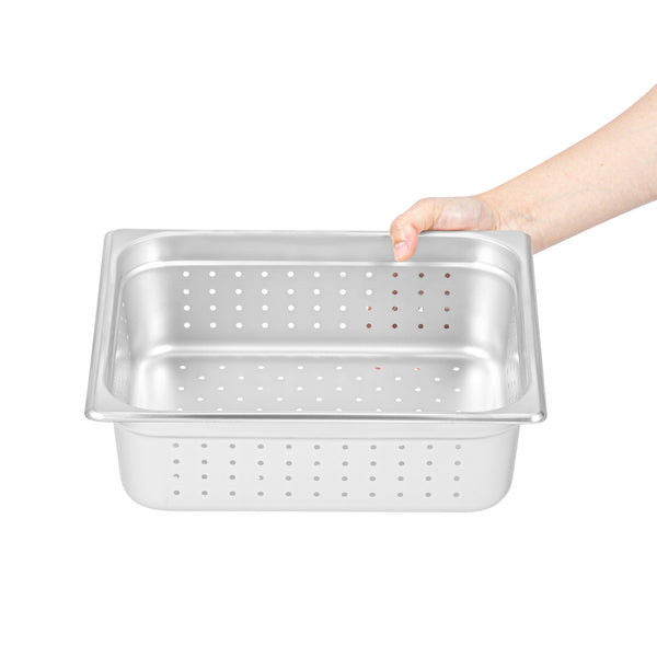 STAINLESS STEEL 1/2 SIZE STEAM TABLE PAN - 4 INCH DEEP, PERFORATED