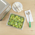 These metal steam table pans are designed with no-jam lugs, allowing for easy stacking and separation to save time and effort during busy meal prep. They are freezable for easy food storage.
