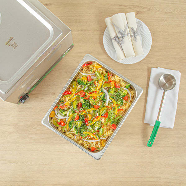 Provide an added layer of protection and freshness! These metal buffet pans can be paired with compatible lids to help keep your food secure and maintain optimal temperature during service.