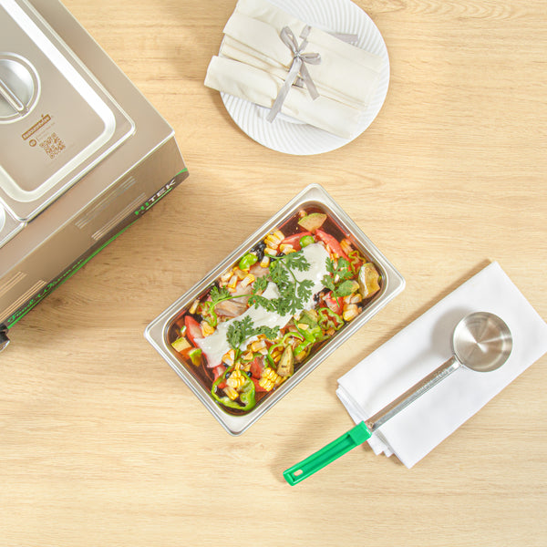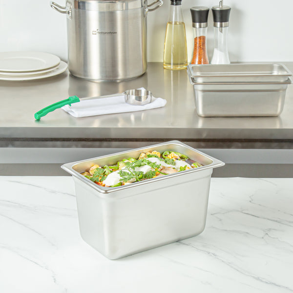 Provide an added layer of protection and freshness! These metal buffet pans can be paired with compatible lids to help keep your food secure and maintain optimal temperature during service.