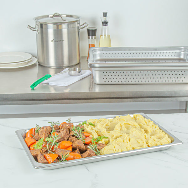 These steam table pans are crafted for versatility, with options in both solid and perforated designs to accommodate different cooking and serving needs. Choose the perfect style to streamline food preparation and presentation.