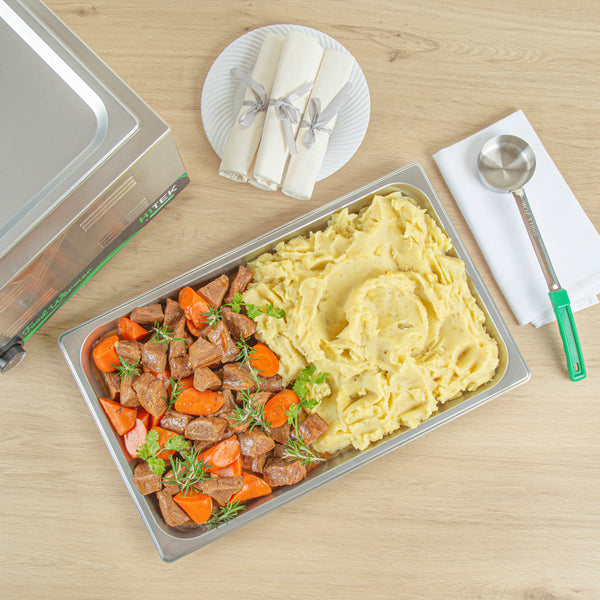Provide an added layer of protection and freshness! These metal buffet pans can be paired with compatible lids to help keep your food secure and maintain optimal temperature during service.