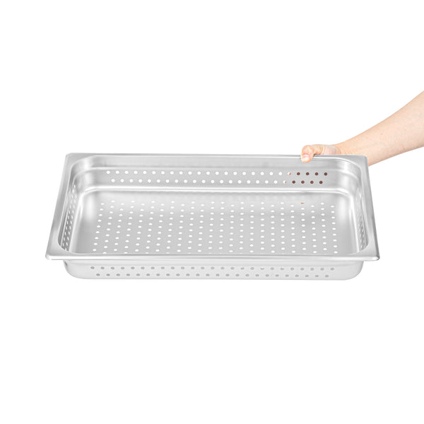 STAINLESS STEEL FULL SIZE STEAM TABLE PAN -2 1/2 INCH DEEP, PERFORATED