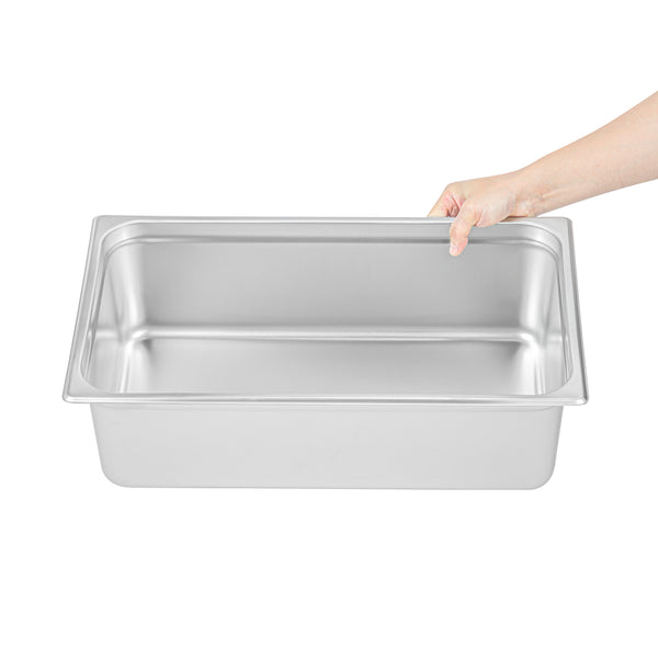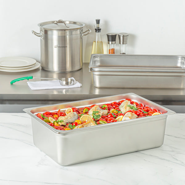 Provide an added layer of protection and freshness! These metal buffet pans can be paired with compatible lids to help keep your food secure and maintain optimal temperature during service.