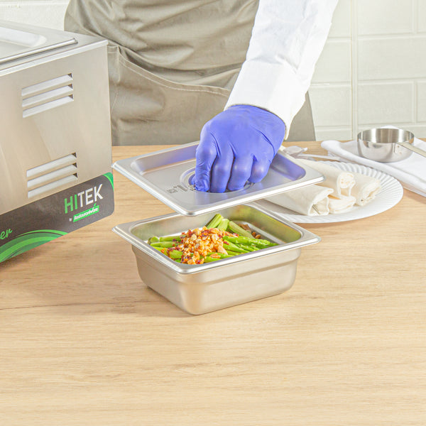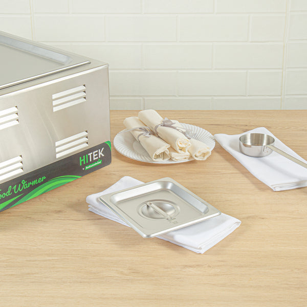 Ensure seamless kitchen operations with a reliable stainless steel pan cover. The Kitchen Tek Heavy-Duty Hotel Pan Lid features a robust 24 gauge stainless steel construction that withstands frequent, rigorous use, making it an essential tool for high-volume foodservice environments. Its flat handle design allows for effortless opening and closing, facilitating smooth transitions during busy service hours, while the polished exterior enhances the presentation of your culinary creations, elevating the visual appeal of any steam table setup. Measuring 6.9 inches in length and 6.4 inches in width, this hotel pan lid securely fits 1/6 size steam table pans to maintain optimal temperature and moisture levels, ensuring your dishes remain at their best. Dishwasher safe and freezer-safe, this versatile lid simplifies cleaning and storage, saving valuable time in fast-paced kitchens. Enhance your kitchen’s efficiency with this indispensable steam table pan cover. Each order includes 12 Kitchen Tek Heavy-Duty Hotel Pan Lids.