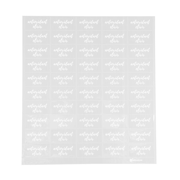 ANTIOXIDANT ELIXIR LABEL - CLEAR WITH WHITE FONT, WATER-RESISTANT